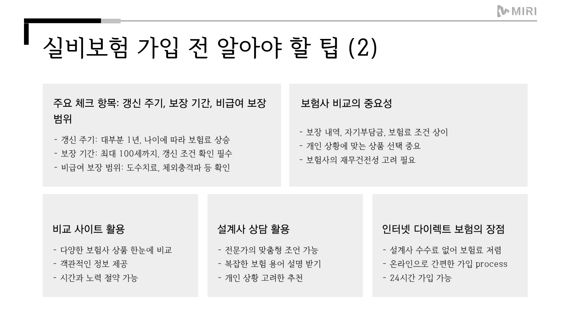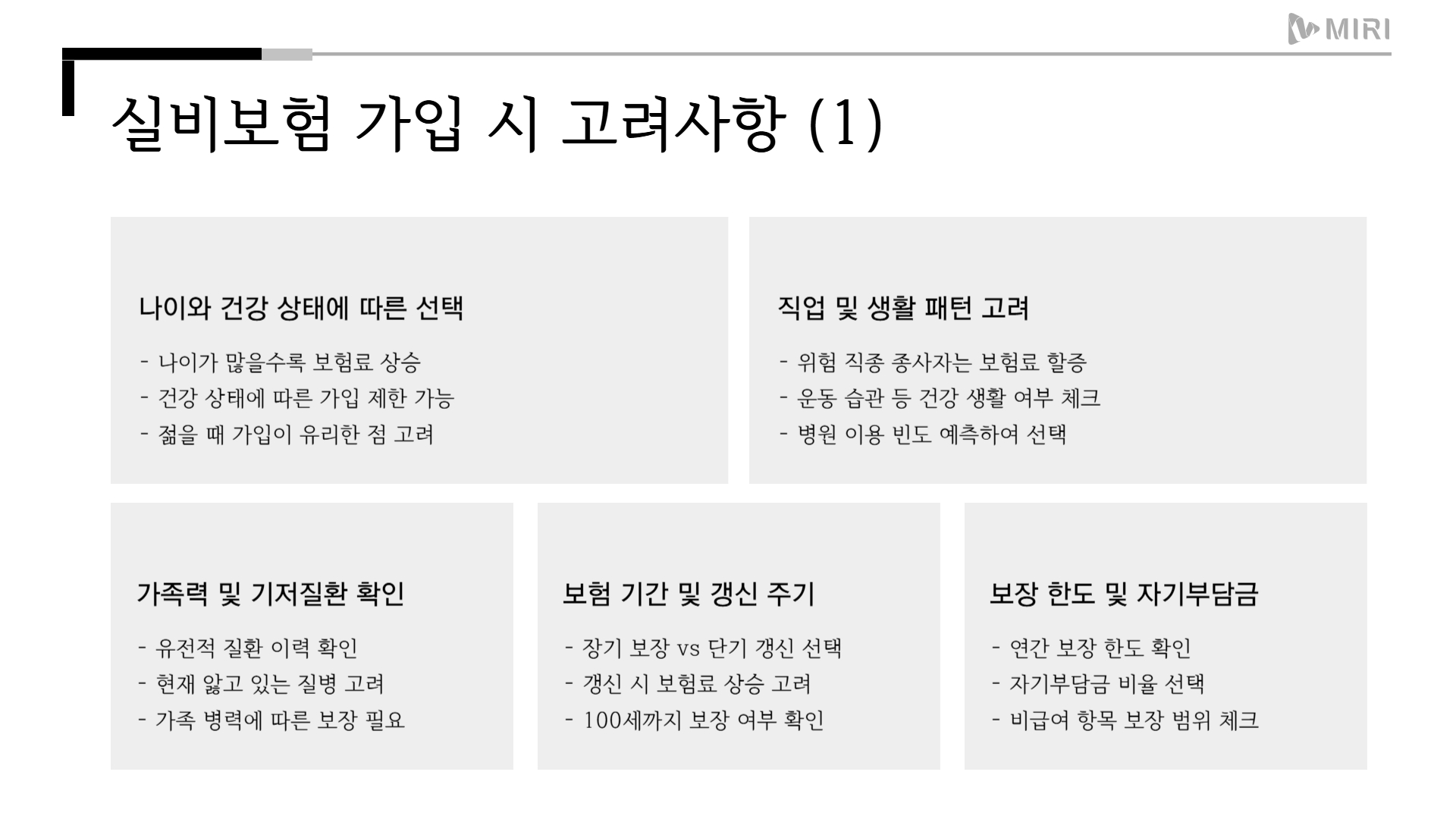 • 최근 비급여 항목 제한 강화로 인해 과거보다 보장이 축소됨