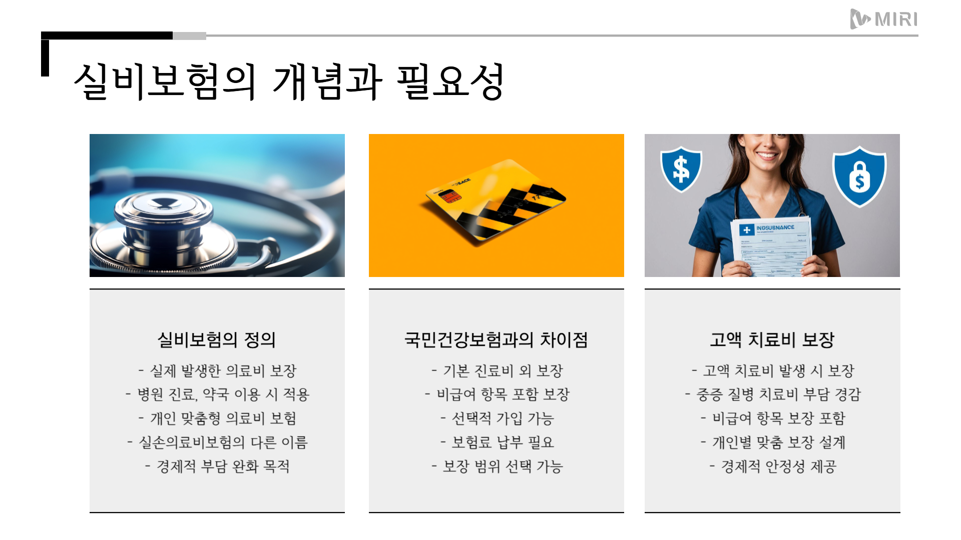 - 최근 비급여 항목 제한 강화로 인해 과거보다 보장이 축소됨