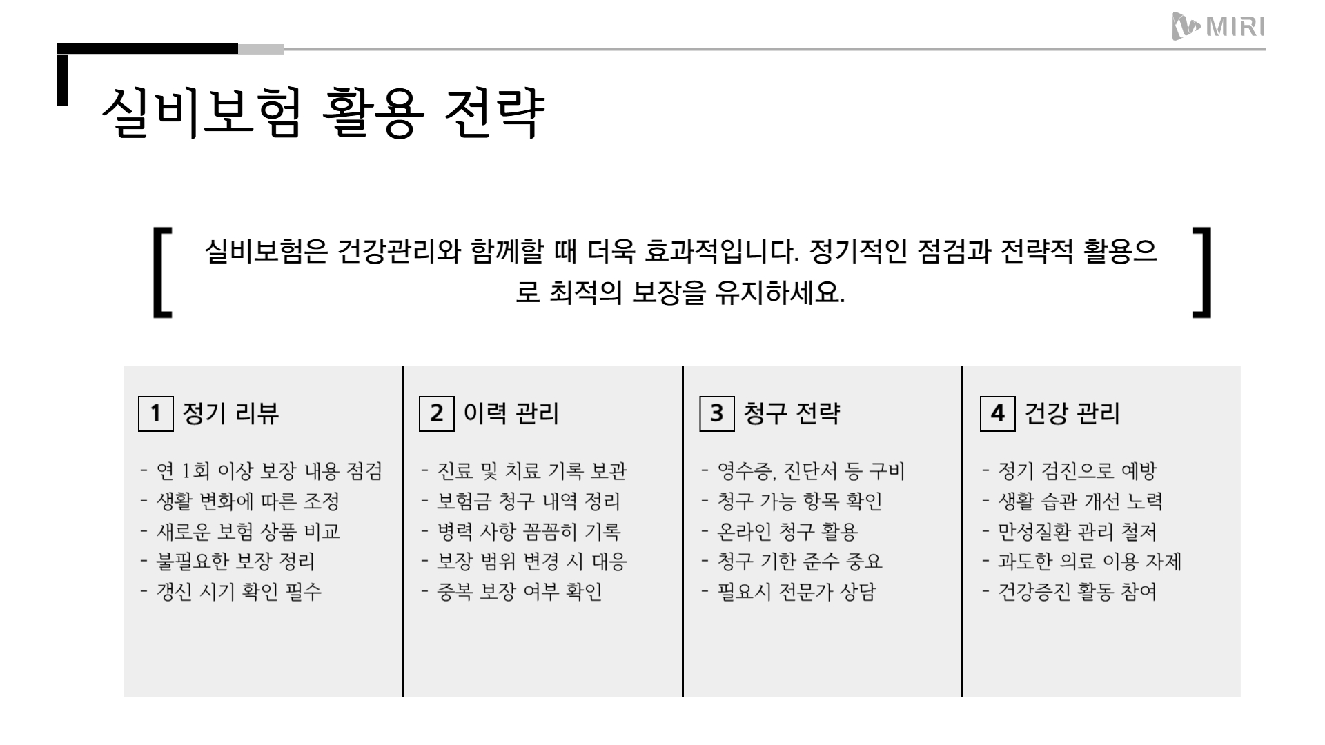 또한 정기적인 보험 리뷰와 함께 자신의 보장 이력과 병력 기록 관리도 실비보험을 제대로 활용하는 데 매우 중요합니다. 나와 가족의 건강을 위한 필수 도구로 실비보험을 적극 활용해보세요.